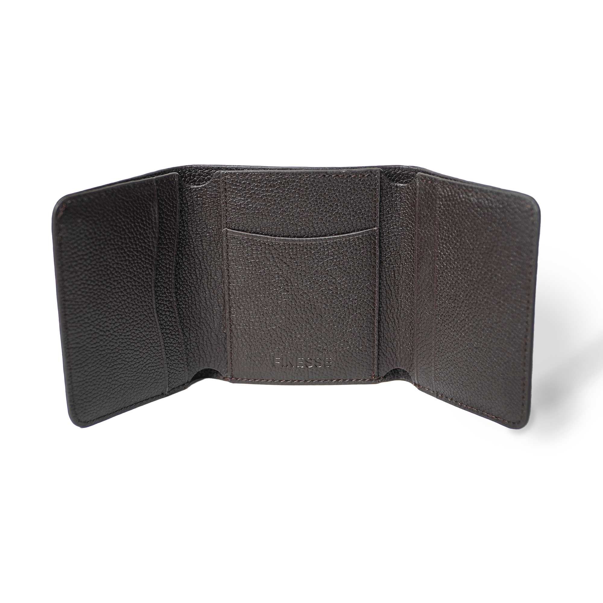 Introducing the Finesse Trifold Bonded Leather Wallet, a stylish and functional accessory for men. Crafted from high-quality leather, this wallet features a trifold design that is both unique and practical. With ample space for cards, coins, and notes, this wallet is perfect for everyday use. The sleek and minimalist design makes it a great addition to any outfit, while the durable construction ensures it will last for years to come. Whether you're headed to work or out on the town, the Finesse Trifold Bonded Leather Wallet has got you covered.